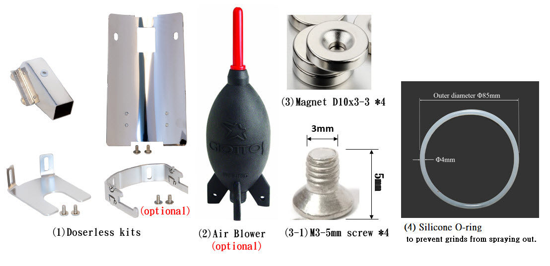 1.Stainless doserless kits (Three parts of doserless chute / back panel/ portafilter parts)